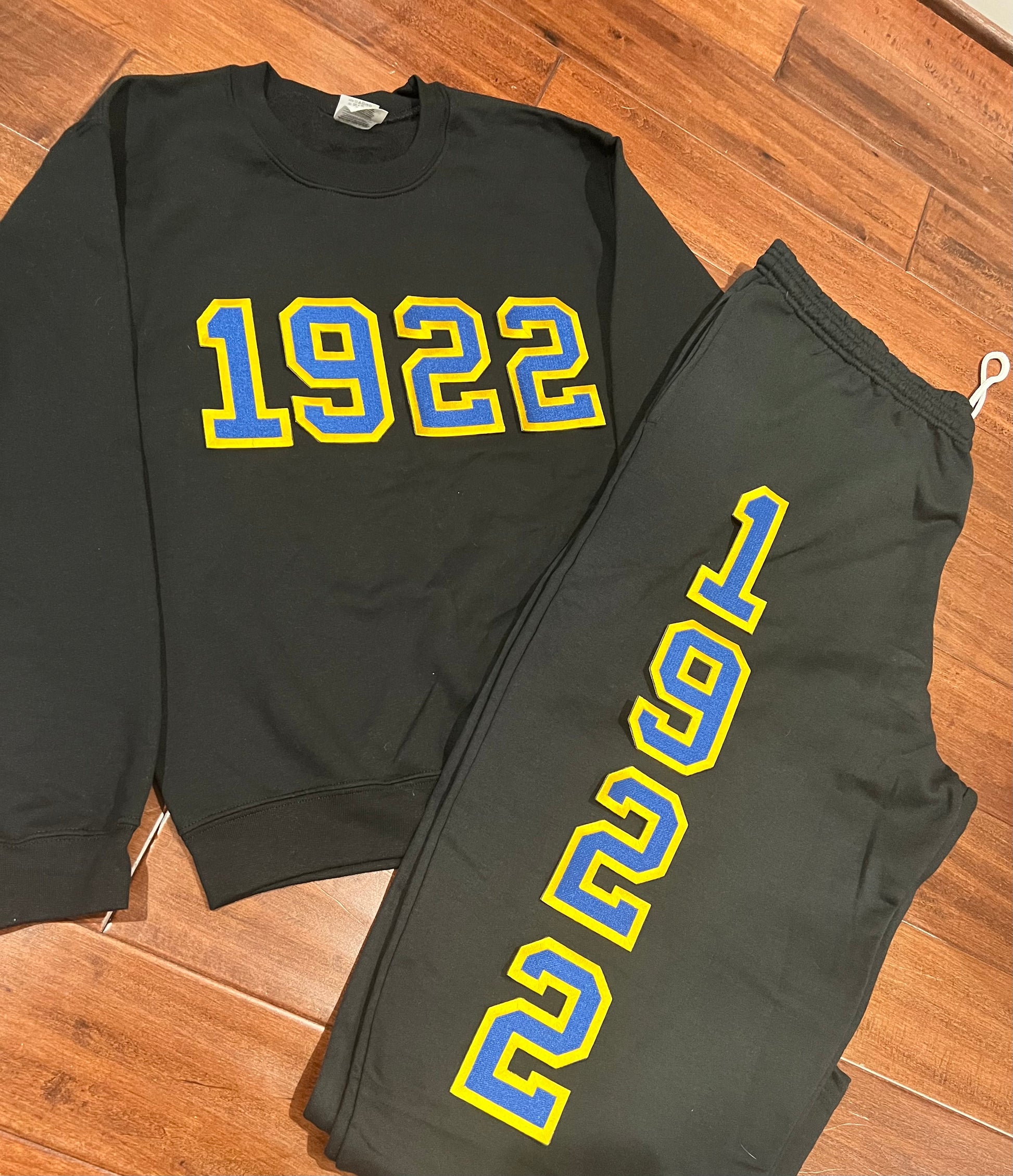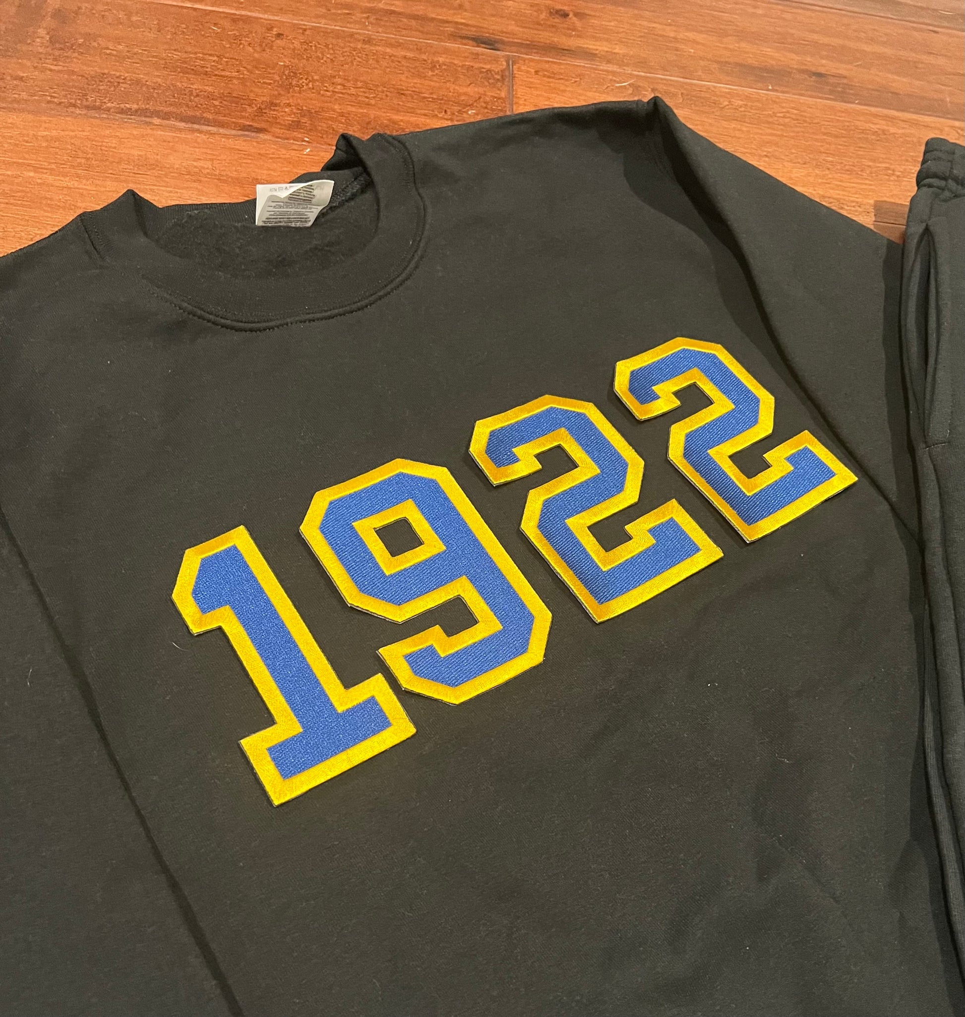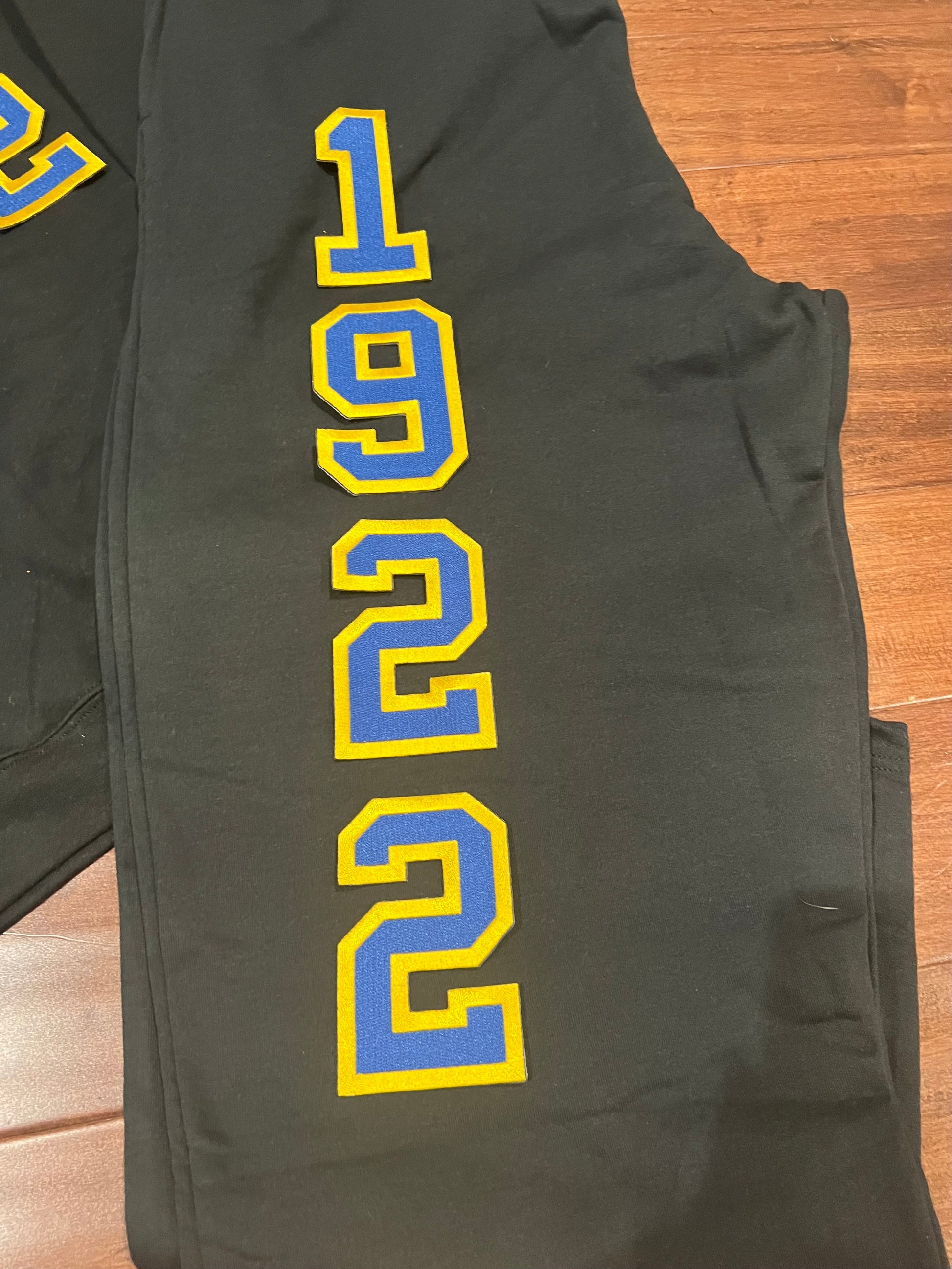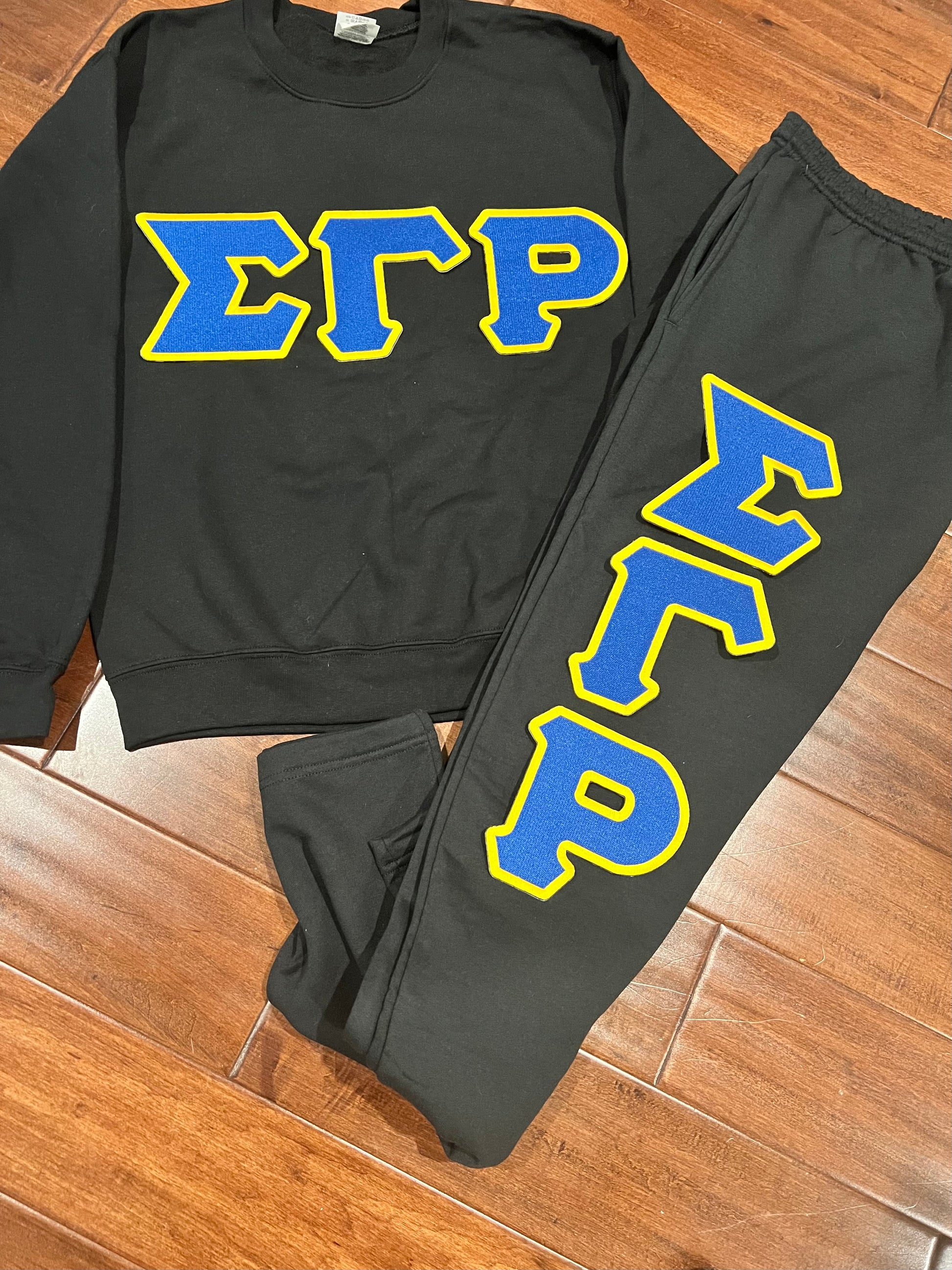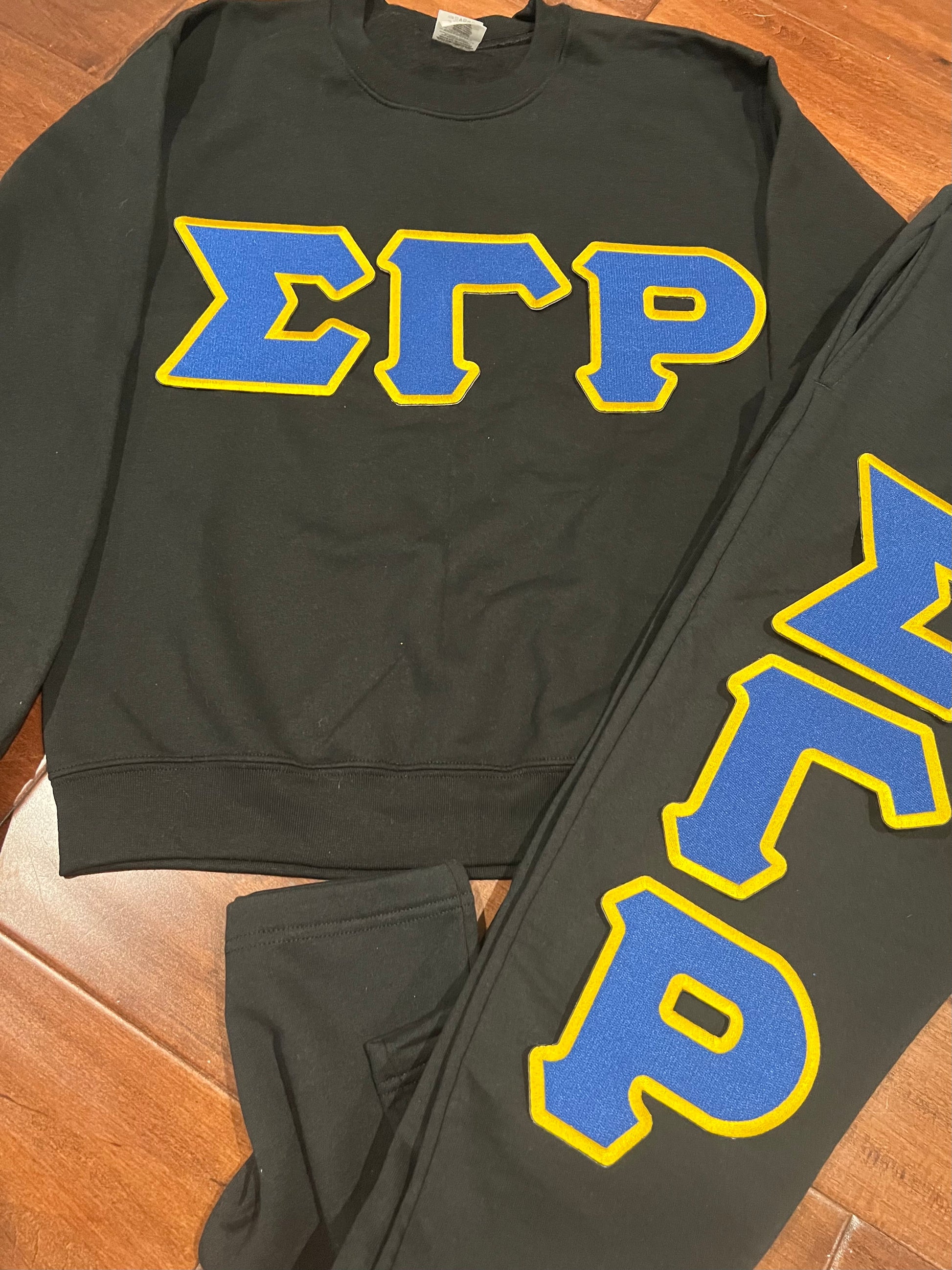 Royal Blue and Gold numbers/letters in Embroidery on both the sweater and the pants (See listing for vinyl options).