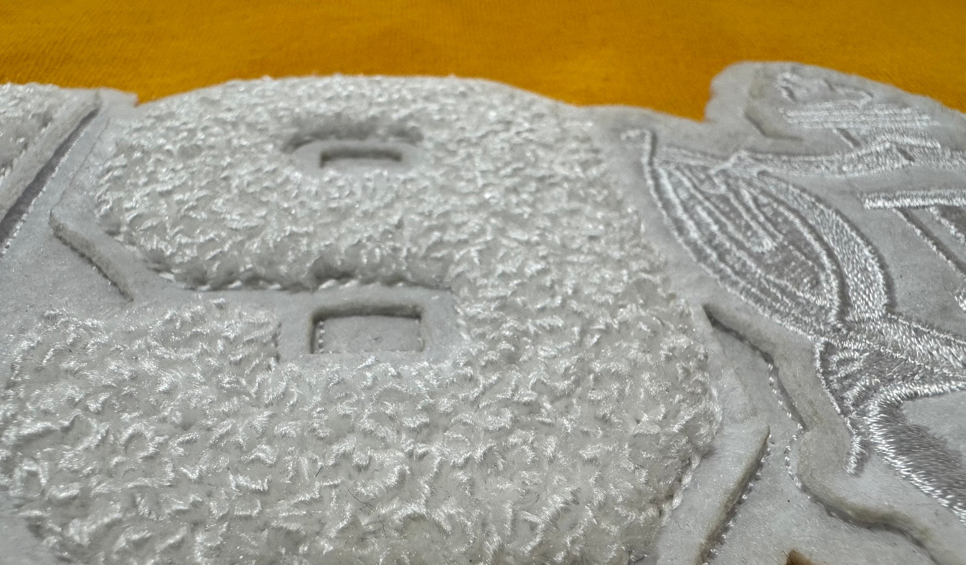 Gildan Sweater in White or Gold with Chenille 1943 and the shield.