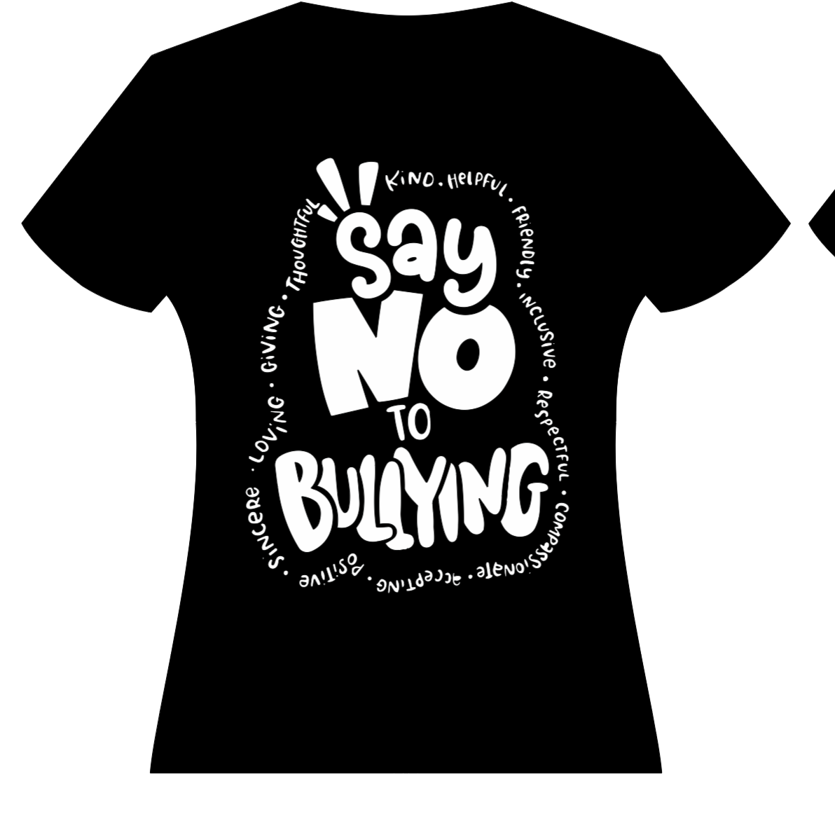 Crafted with comfort and style in mind, this black T-shirt features the impactful "Say no to Bullying" logo on the front, serving as a reminder to stand up against bullying in all its forms.