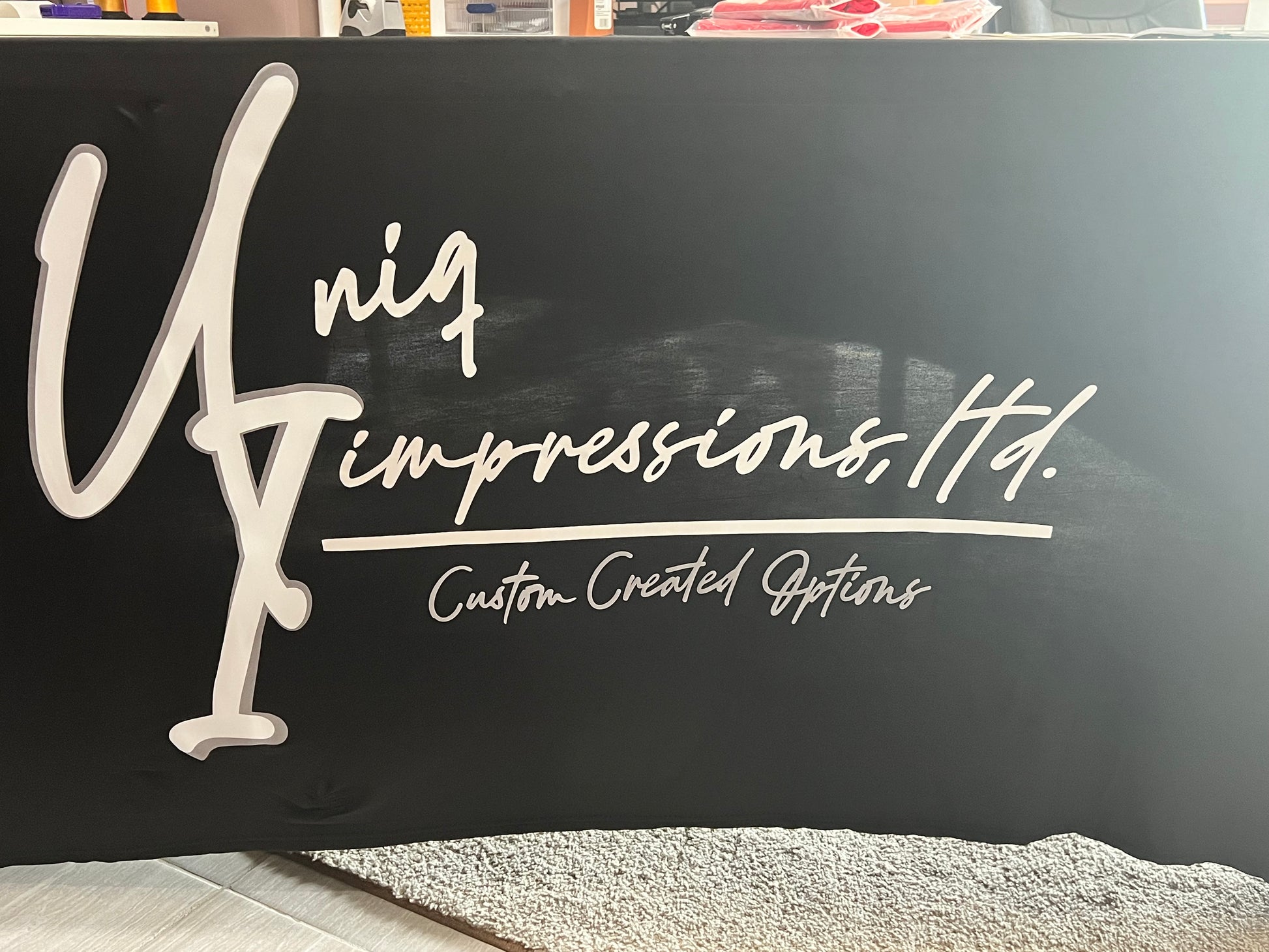 6 ft stretch table cover. Customized with the inscription of your choice up to 3 colors.