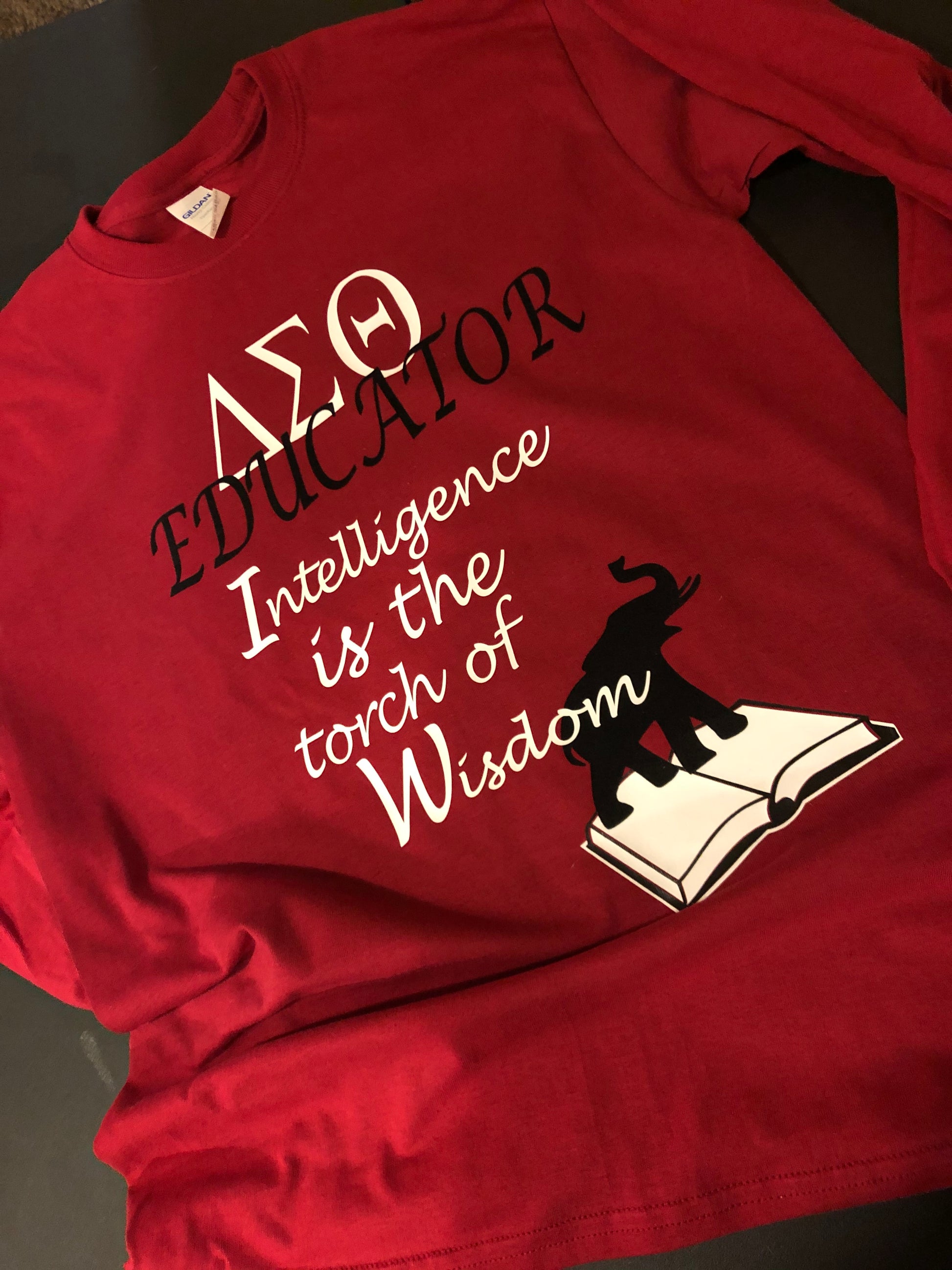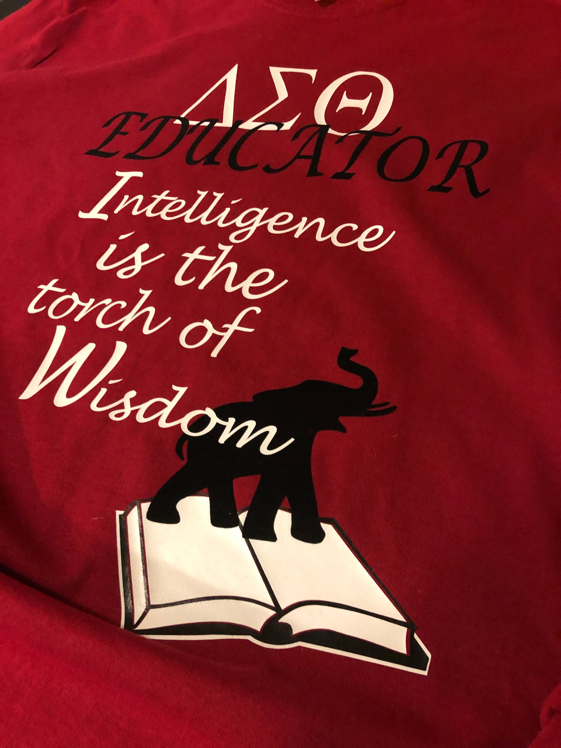 Our DST Educator shirt is meticulously crafted using premium materials and techniques. The elephant design is embellished with black flock, giving it a luxurious and velvety soft feel. It's not just a shirt; it's a statement piece that exudes sophistication and intellect.