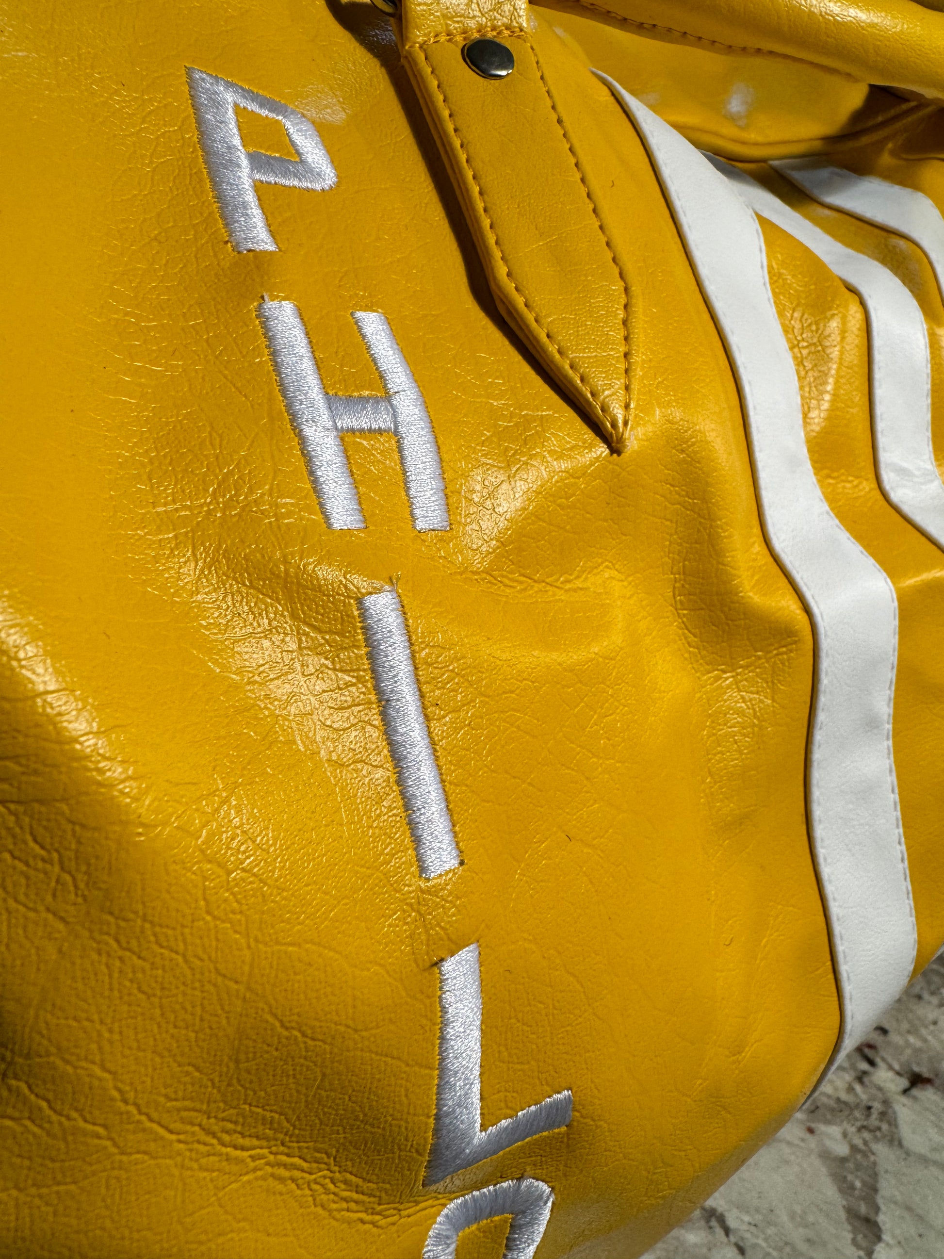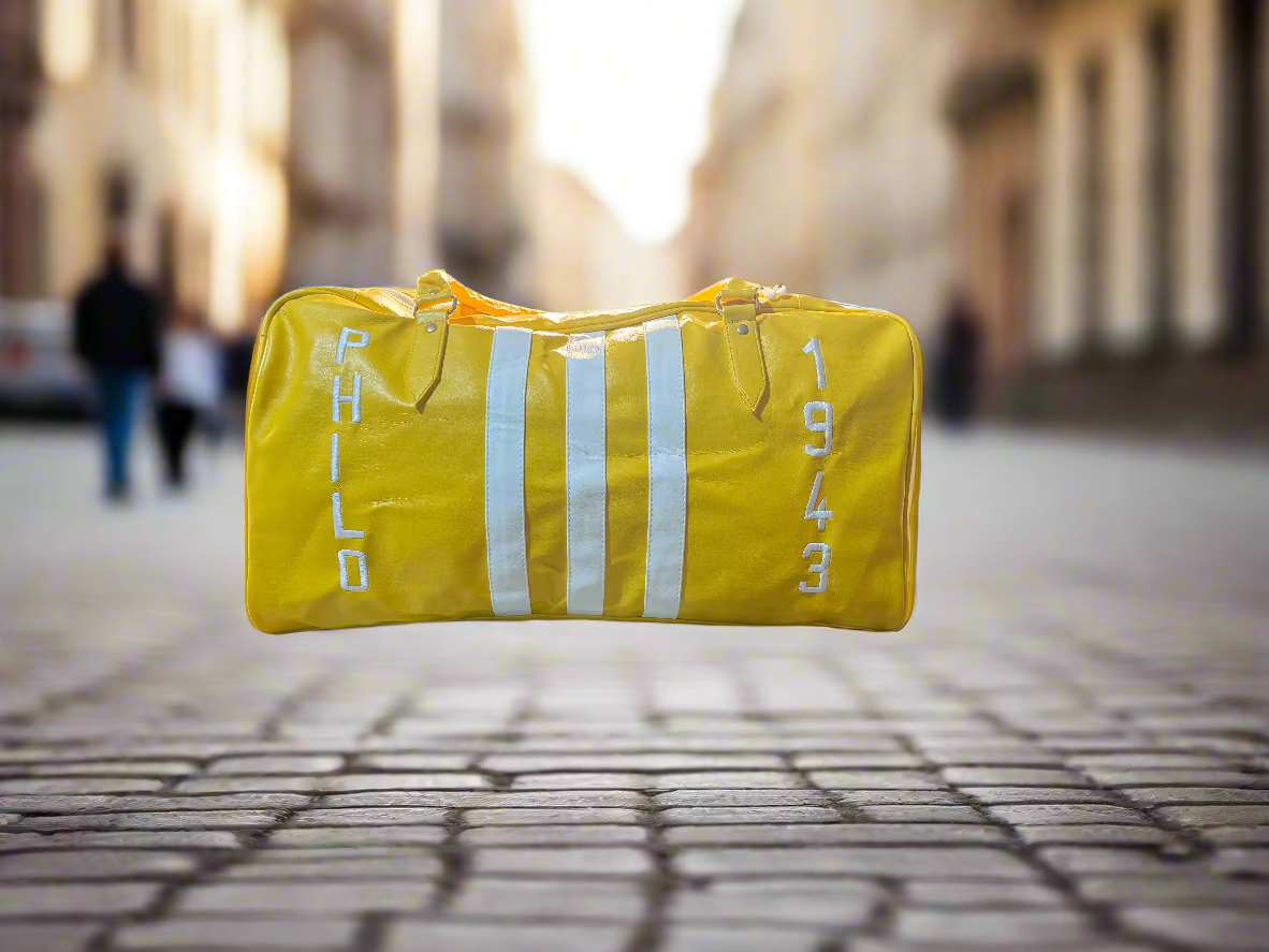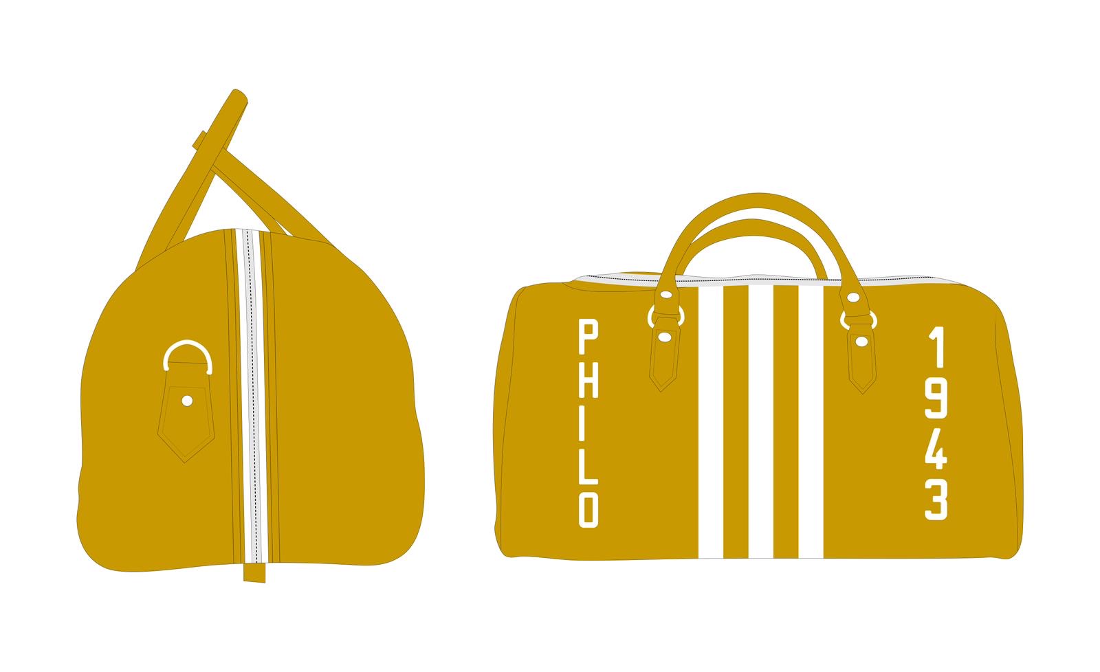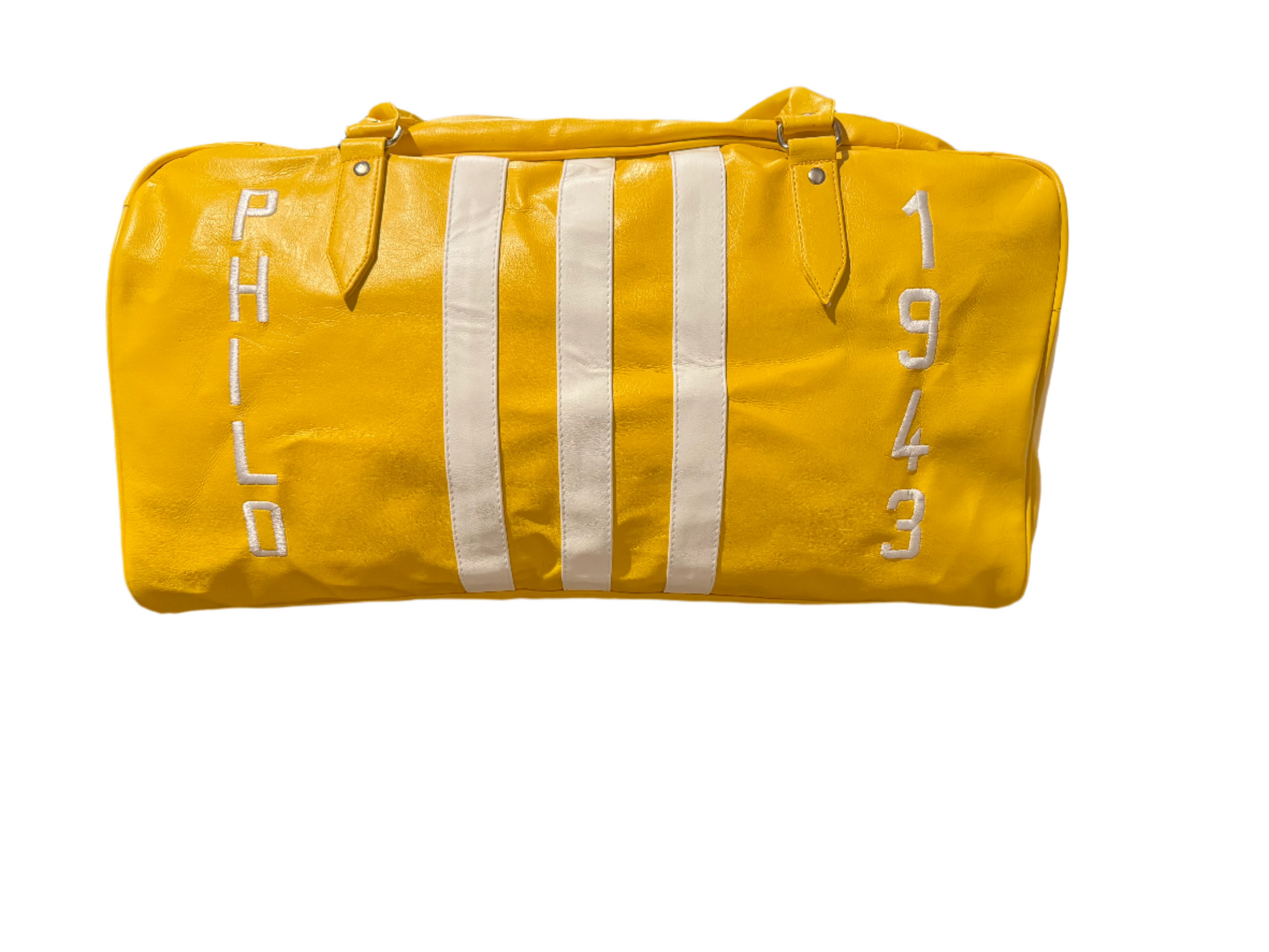 Sturdy leather-styled duffle with embroidered PHILO & 1943 on both sides. Spacious Interior, Detachable Shoulder Strap, Inside Zipper Pocket.