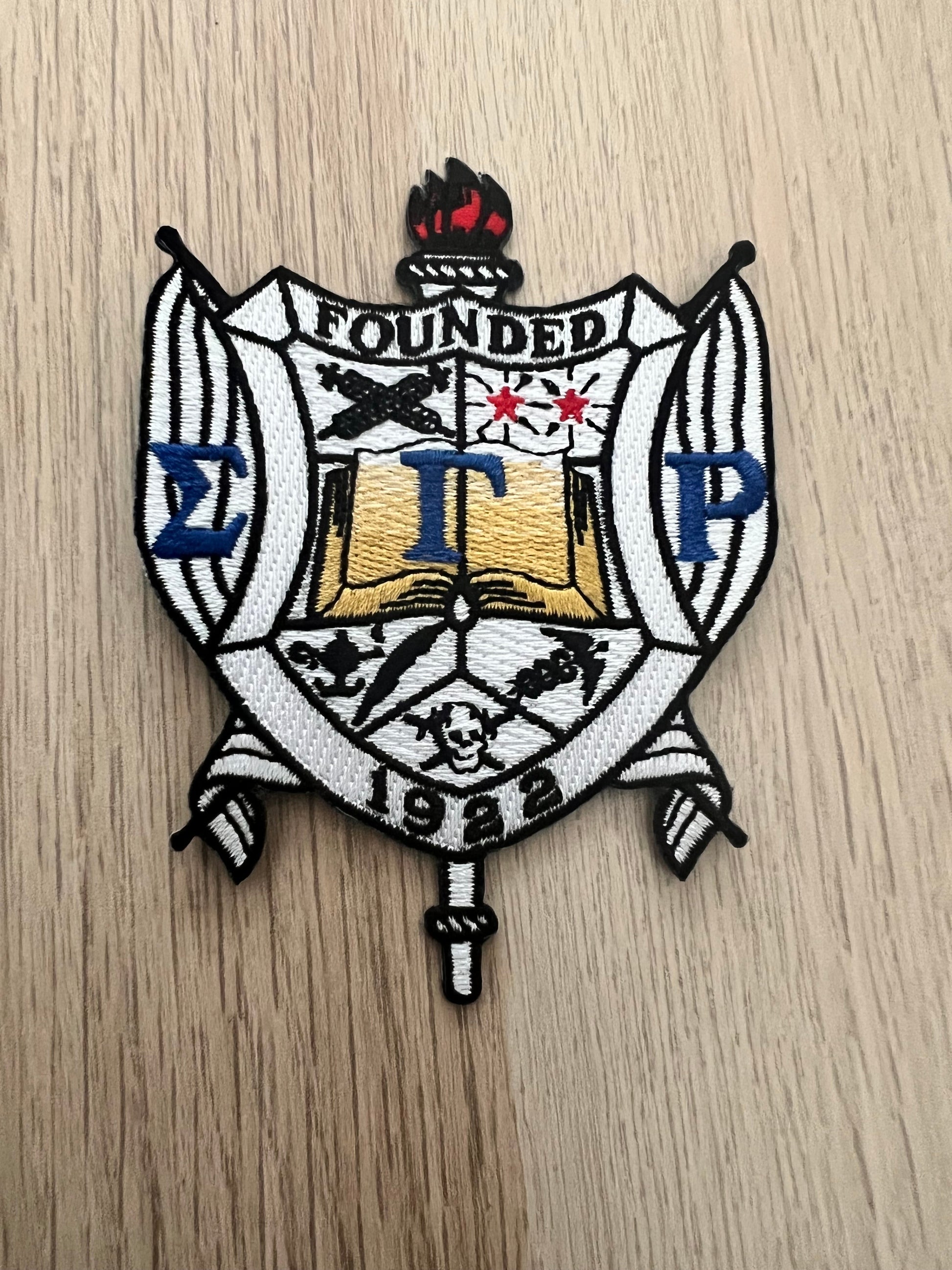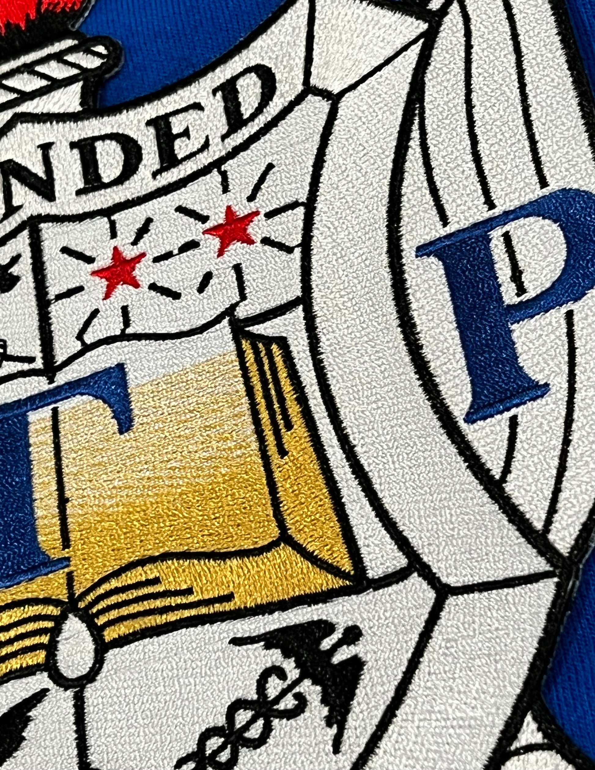 This crewneck sweater is available in Royal Blue or Gold. Boasts a solid constructed embroidery shield.