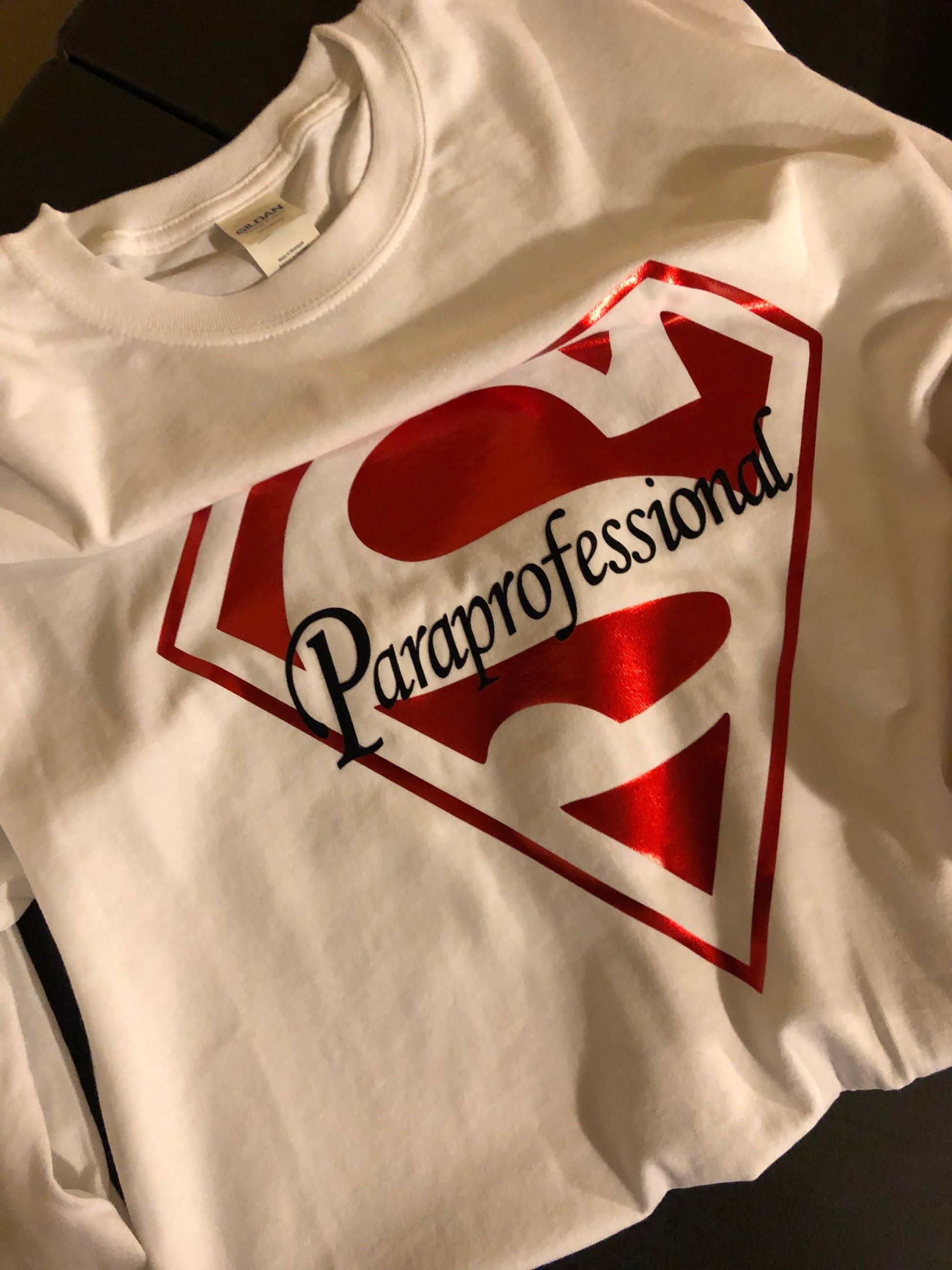 Available in long and short sleeve white tees, any inscription can be place on top of the Super symbol.